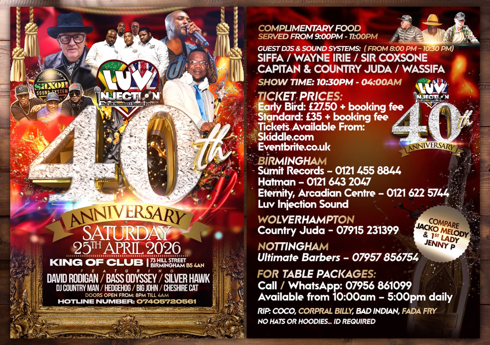 Celebrate 40 years of excellence as Luv Injection – The UK’s Number 1 Sound System marks a historic milestone with an unmissable anniversary event in Birmingham. This landmark celebration brings together legendary selectors, heavyweight sound systems, and authentic reggae culture for a night of pure vibes and musical mastery.