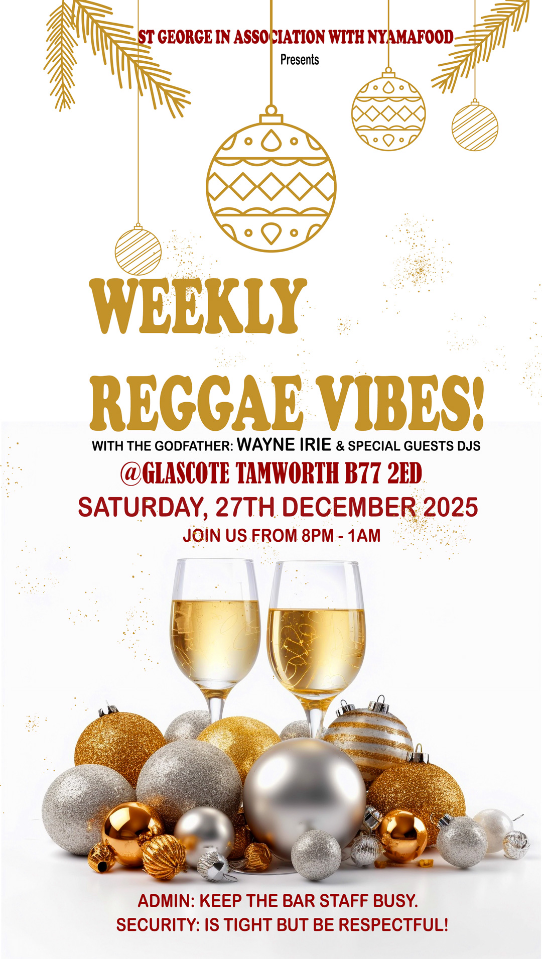 FeaturedGlascote, Tamworth, B77 2ED , United KingdomGet ready for a festive night of pure reggae energy as the legendary Wayne Irie – The Godfather brings unstoppable vibes to Tamworth alongside a lineup of special guest DJs.