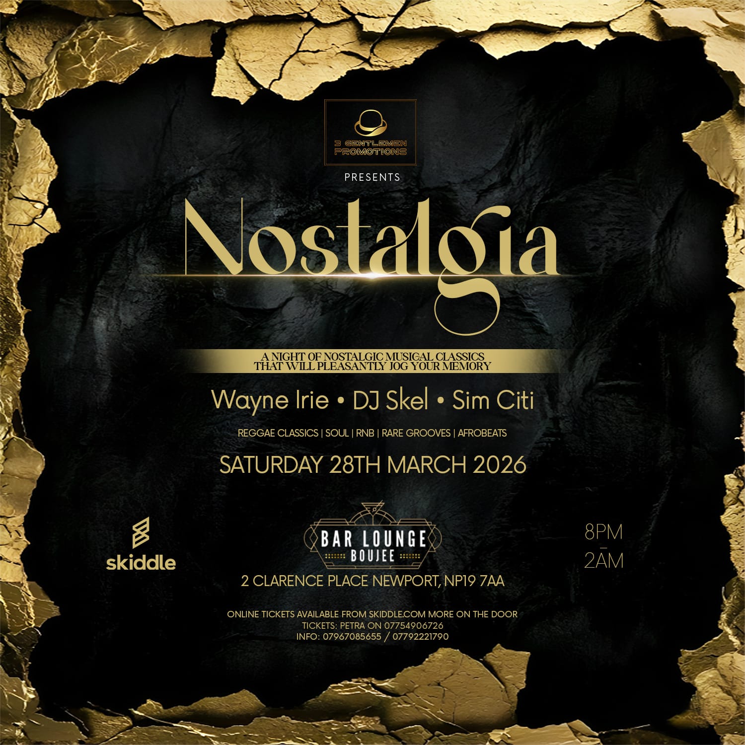 Featured2 Clarence place Newport NP19 7AA, Newport, Np19 7aa , United KingdomStep back in time and relive the golden era of music at NOSTALGIA Part 3, brought to you by 3 Gentlemen Promotion — a night of timeless grooves and pure class!