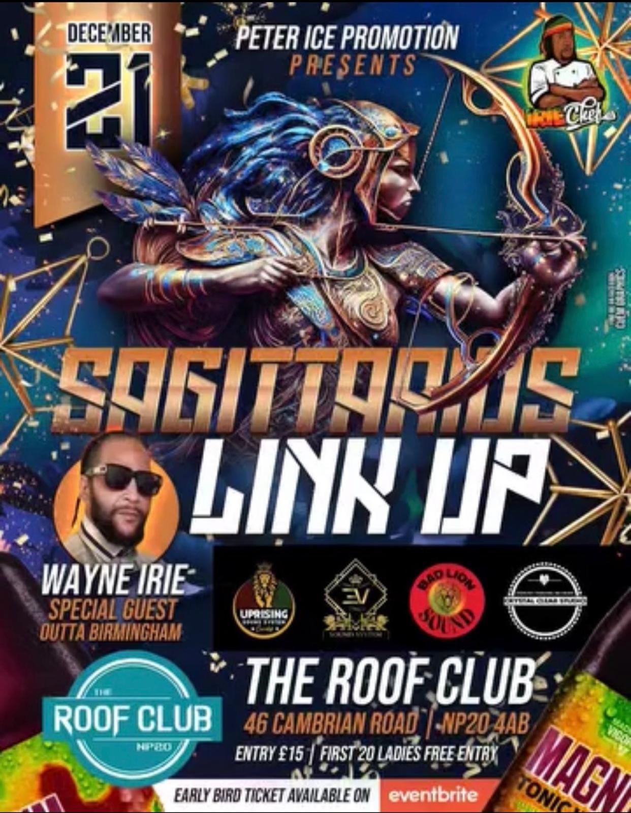 The Roof ClubJoin us for an unforgettable night at the Sagittarius Link Up, presented by Peter Ice Promotions.