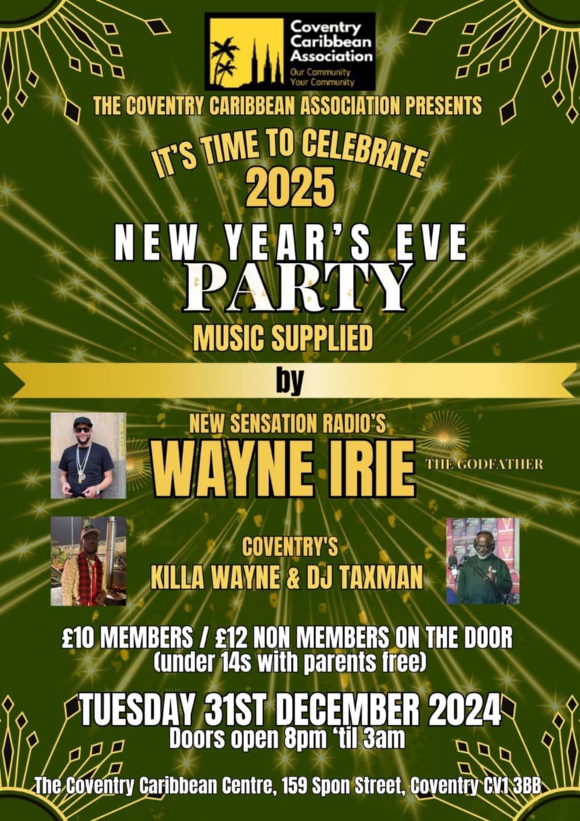 Coventry Caribbean Centre, 159 Spon Street, Coventry CV1 3BBRing in the New Year in style with Wayne Irie and a night full of vibes, great music, and non-stop entertainment!